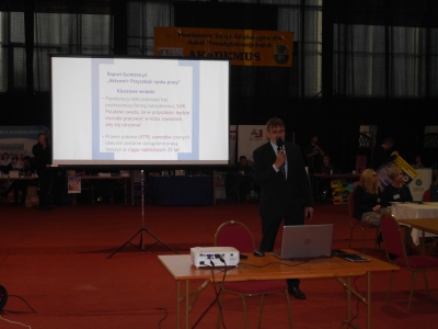 Tym razem uczestnicy targów spotkali się nie tylko z przedstawicielami wyższych uczelni i pozostałymi wystawcami, ale mieli okazję wysłuchać bardzo ciekawych prelekcji wygłoszonych przez Klaudię Zagórowicz z CIiPKZ, WUP w Gdańsku pn. ABC kariery zawodowej oraz Grzegorza Makowskiego i Marka Lemańczyka, którzy prezentowali ofertę edukacyjną dla tych, którzy nie myślą o studiach. Ponadto, w trakcie targów została także przedstawiona ciekawa scenka, pokazująca jak może przebiegać rozmowa kwalifikacyjna i na co warto zwrócić uwagę podczas przygotowania do takiego spotkania. Scenkę przedstawiła młodzież z Liceum Ogólnokształcącego im. W. Pola w Czersku, przygotowaną pod kierunkiem Małgorzaty Szulc – doradcy zawodowego.