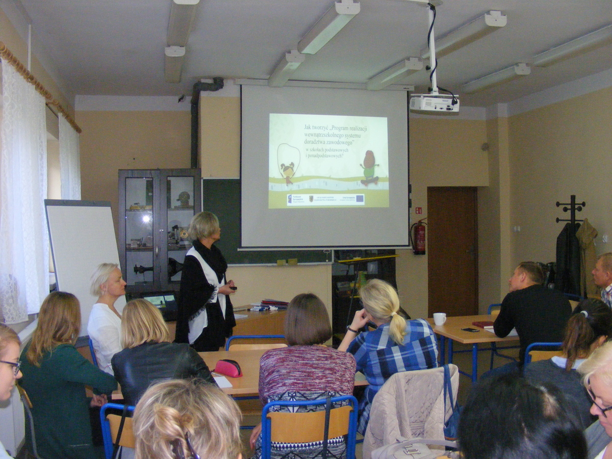 Spotkanie miało formę szkolenia, odbyło się 28 września 2018 r. w Centrum Kształcenia Zawodowego i Ustawicznego w Chojnicach. Dotyczyło tworzenia w szkołach nowego ustroju „Programów realizacji Wewnątrzszkolnego Systemu Doradztwa Zawodowego” zgodnie z Rozporządzeniem MEN z dnia 16 sierpnia 2018 roku w sprawie doradztwa zawodowego.