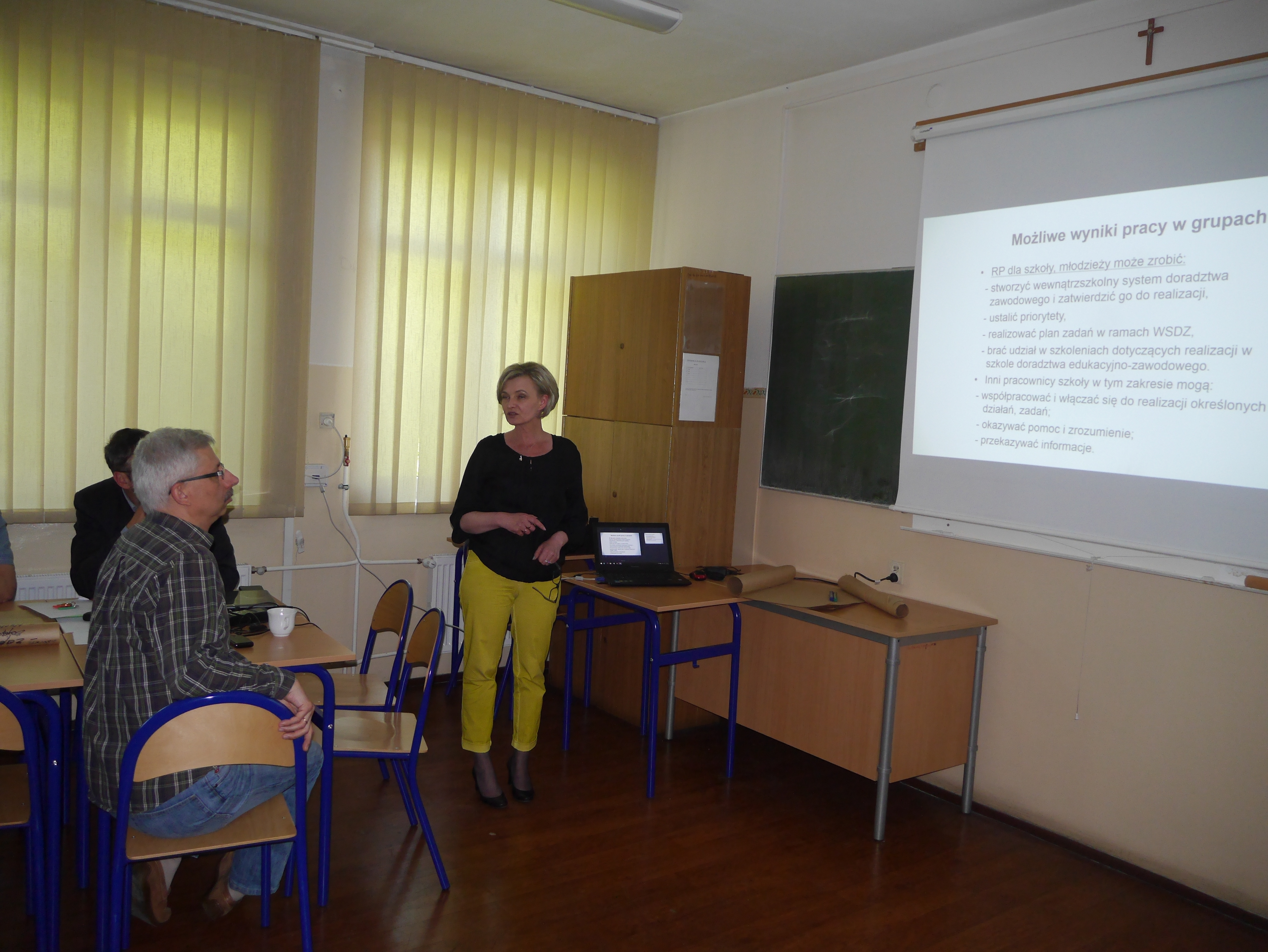 Całość poprowadziła Alina Urbańska powiatowy konsultant ds. doradztwa edukacyjno-zawodowego. Kolejny etap to szkolenia w zakresie WSZD w szkołach dla młodzieży.