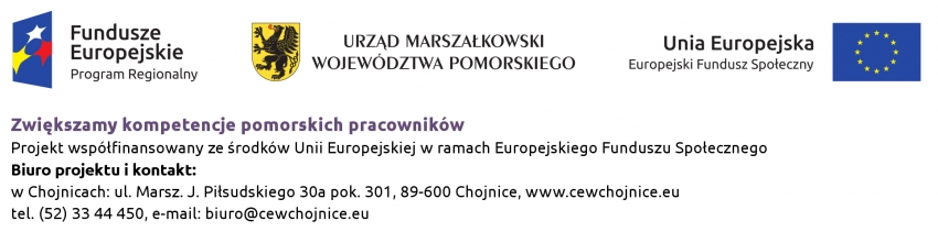 Projekt: „Zwiększamy kompetencje pomorskich pracowników” jest współfinansowany ze środków Unii Europejskiej w ramach Europejskiego Funduszu Społecznego.